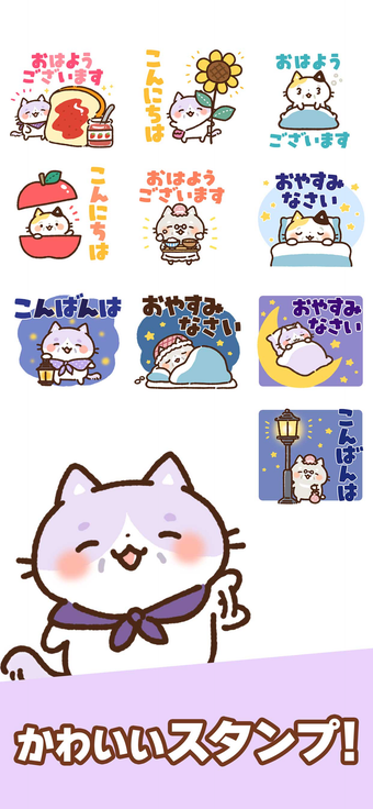 แอปนี้มีคอลเลกชันสติกเกอร์ฟรีที่น่ารัก featuring แมวแก่ที่น่ารัก ออกแบบมาเพื่อเพิ่มการสื่อสารสำหรับผู้ใช้ ธีม 'Wonderful Golden Age' เน้นเสน่ห์ของแมวผู้มีประสบการณ์ ทำให้เป็นเครื่องมือที่น่าสนใจในการเชื่อมต่อกับผู้อื่น ผู้ใช้สามารถส่งสติกเกอร์โดยตรงจากแอปโดยไม่ต้องลงทะเบียนหรือเชื่อมต่ออินเทอร์เน็ต ทำให้มั่นใจได้ถึงประสบการณ์ที่ราบรื่น การออกแบบของแอปใช้ประโยชน์จากฟังก์ชันการทำงาน ทำให้แชร์ได้ง่ายทั่วทั้งแพลตฟอร์มโซเชียลมีเดียต่างๆ